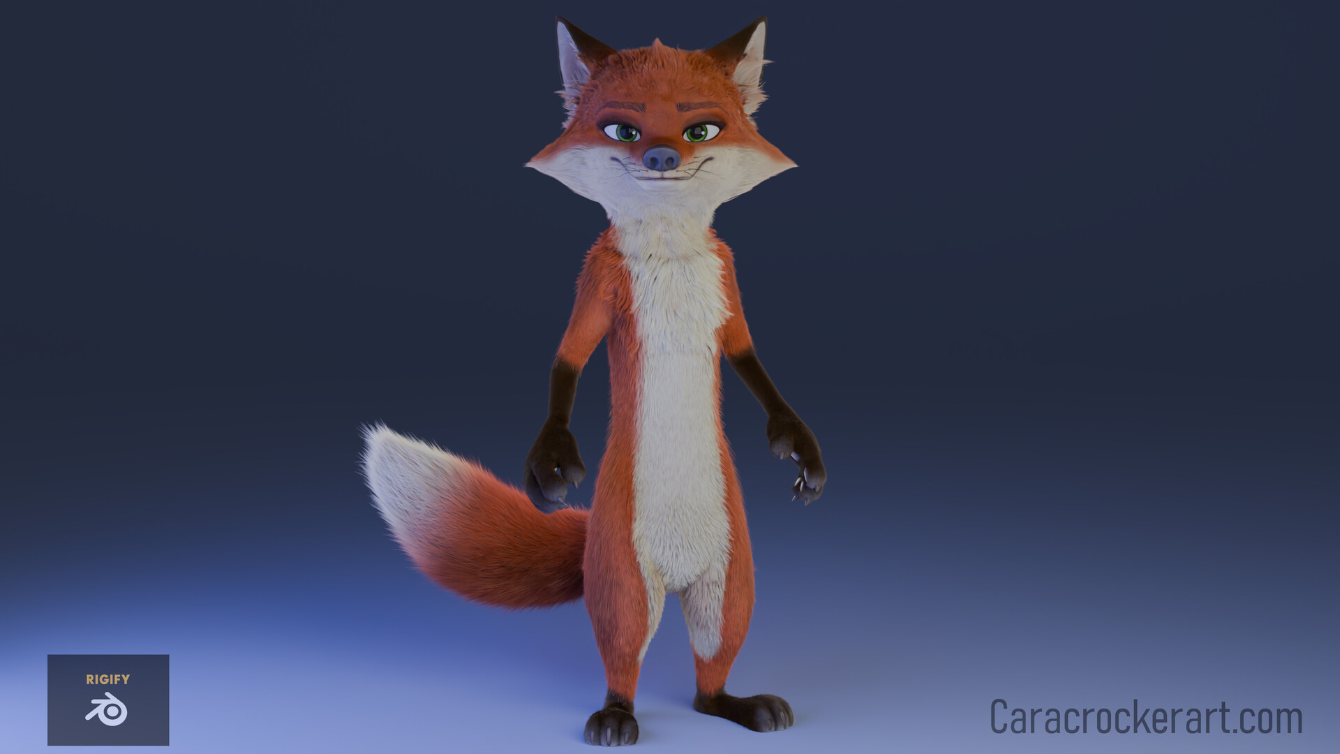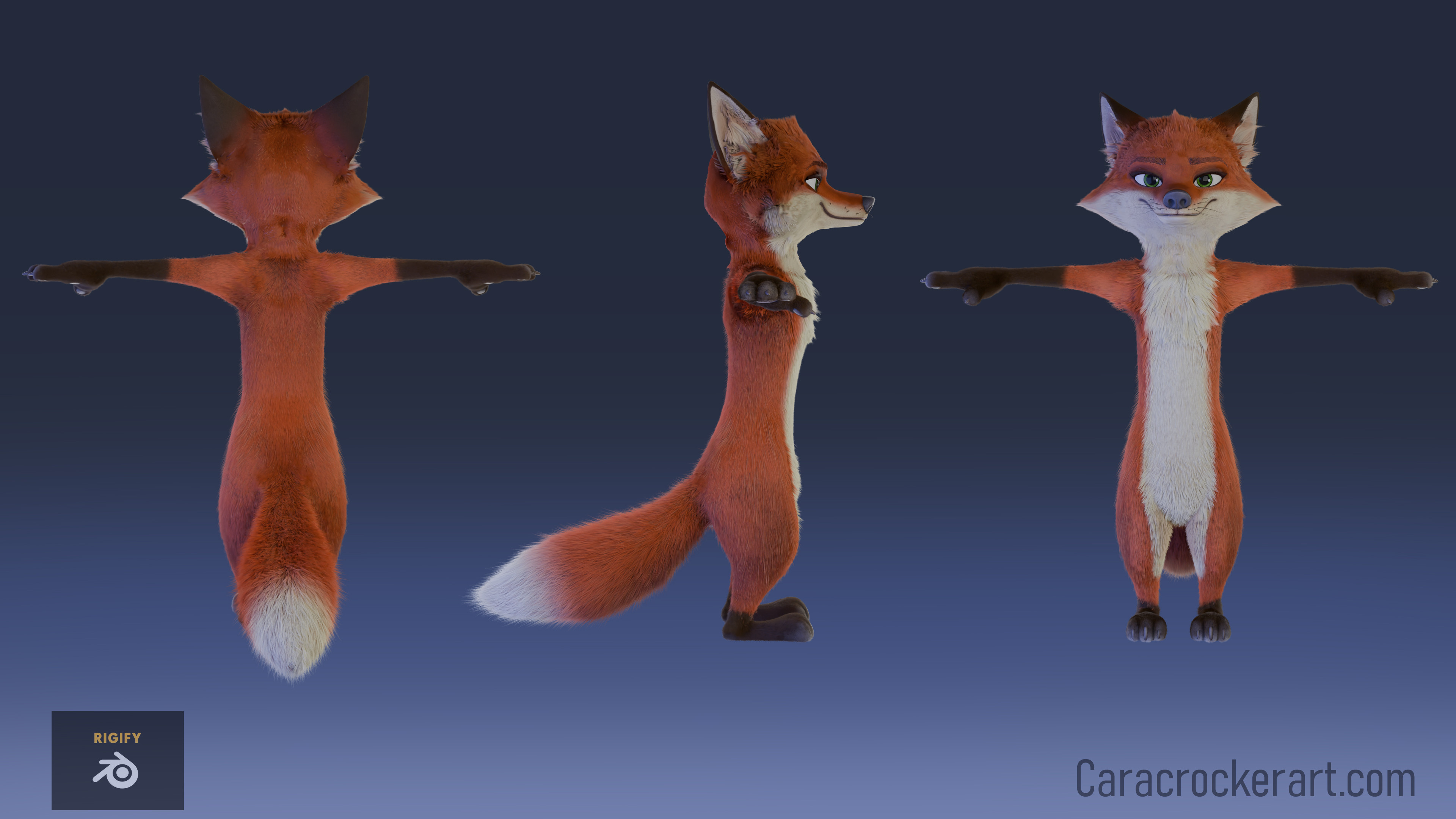This is a personal project that is a work in progress. I wanted to experiment with using Blenders hair curves to make fur. I sculpted the fox in ZBrush, did texturing in Substance Painter and fur/lighting/rendering in Blender cycles. Currently working on cloth in Marvelous Designer to add to her. I used Rigify to make the base rig and then customized the rig myself. I designed this character. I intended it to have a similar feel to the Zootopia characters but still look different.